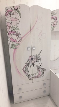 | Материал | Фасады из ЛДСП 16мм с принтерным рисункомКорпус ЛДСП 16 ммКромка ПВХ 0,4 ммРоликовые направляющие., Петли накладные с доводчиками, Ручки пластиковые | |